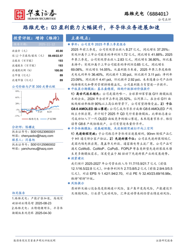 【华安证券】【202511】路维光电:Q3盈利能力大幅提升,半导体业务进展加速-4页 证券期货研究报告