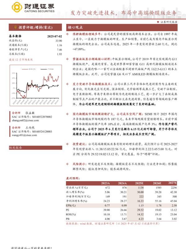 【太平洋证券】【202509】加快创新步伐,半导体芯片掩膜版业务稳步推进-5页 公司研究