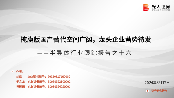 【光大证券】【20240612】20240612-光大证券-半导体行业跟踪报告之十六:掩膜版国产替代空间广阔,龙头企业蓄势待发-40页 行业研究