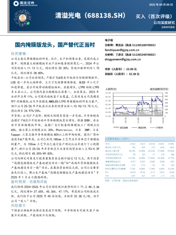【国金证券】【20250409】清溢光电国内掩膜版龙头,国产替代正当时-27页 公司研究