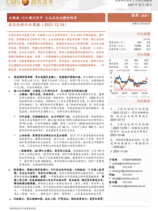 【海通证券】【20211219】食品饮料行业周报:五粮液1218顺利召开 大众品关注提价传导-8页 行业研究