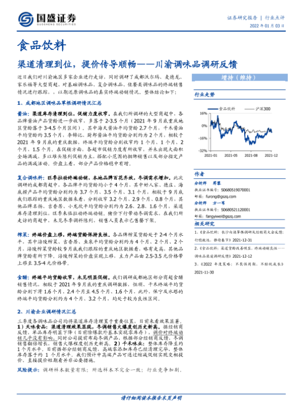 【国盛证券】【20220103】川渝调味品调研反馈:渠道清理到位,提价传导顺畅-7页 行业研究