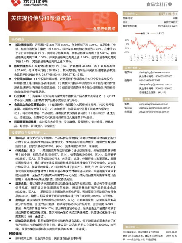 【东方证券】【20220104】20220104-东方证券-食品行业周报:关注提价传导和渠道改革-14页 行业研究