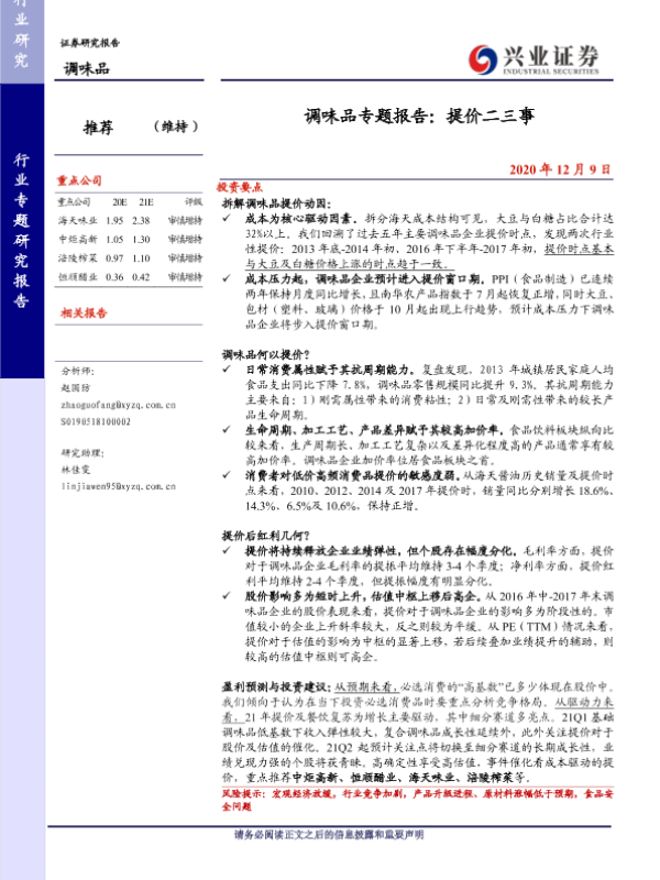 【兴业证券】【20201209】20201209-兴业证券-调味品专题报告:提价二三事-15页 行业研究