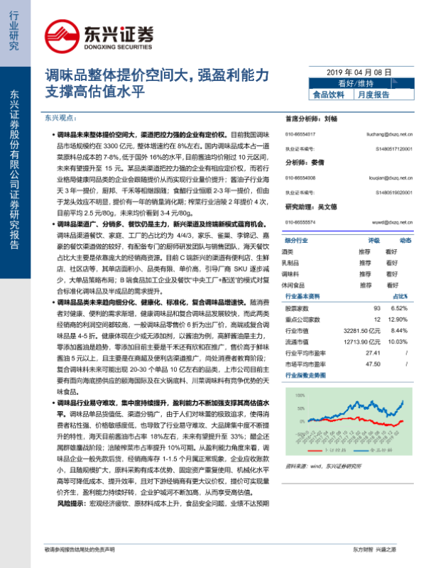 【东兴证券】【20190408】食品饮料行业研究:调味品整体提价空间大,强盈利能力支撑高估值水平-12页 行业研究