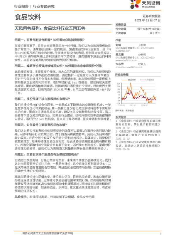 【天风证券】【20211107】天风问答系列:食品饮料行业五问五答-6页 行业研究