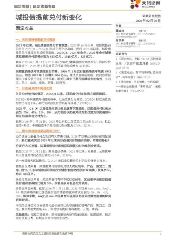 【天风证券】【202602】城投债提前兑付新变化-12页 证券期货研究报告