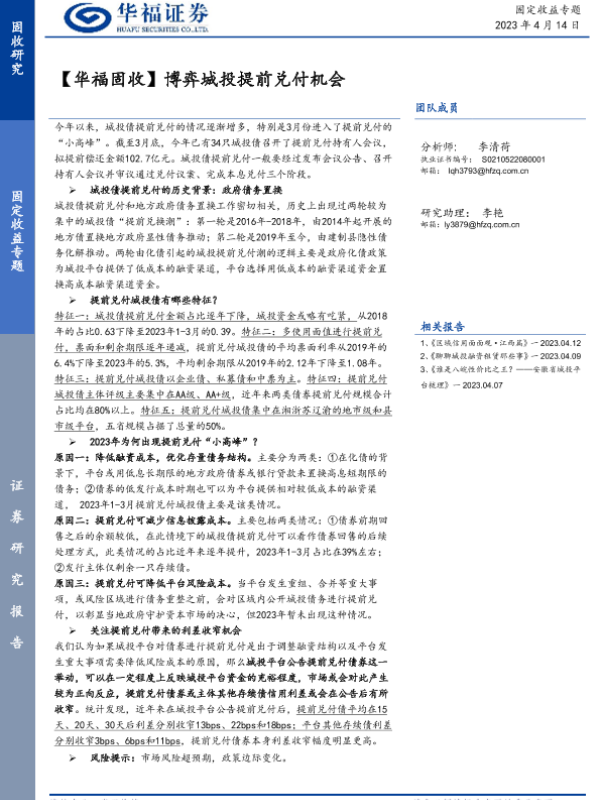 【华福证券】【20230414】【华福固收】博弈城投提前兑付机会-16页 行业研究