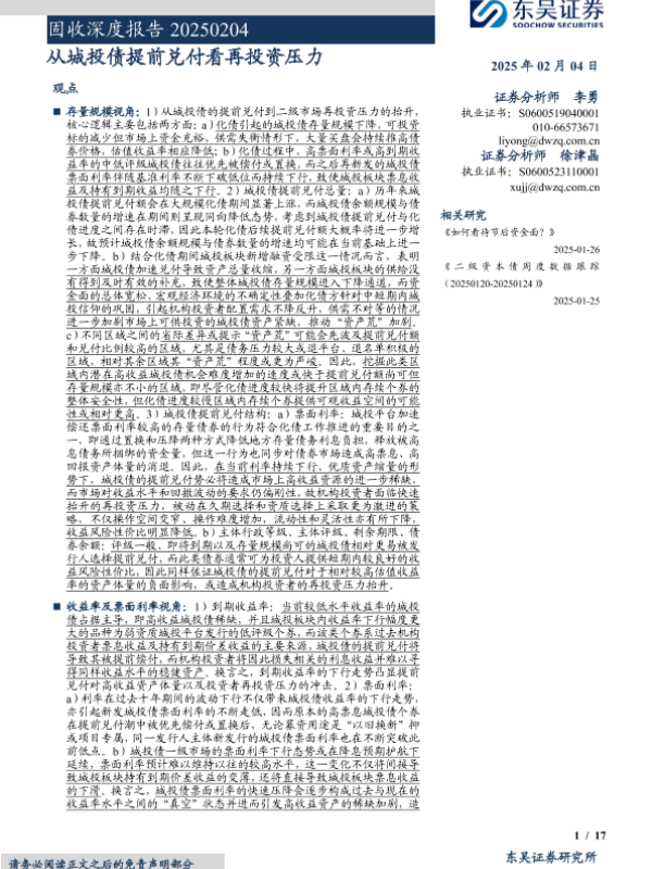 【东吴证券】【20250204】从城投债提前兑付看再投资压力-17页 行业研究