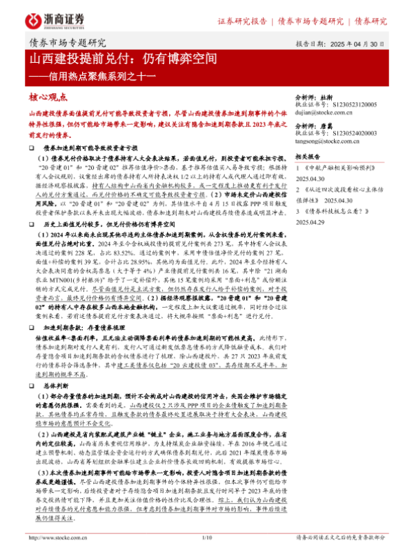 【浙商证券】【20250430】信用热点聚焦系列之十一,山西建投提前兑付:仍有博弈空间-10页 证券期货研究报告