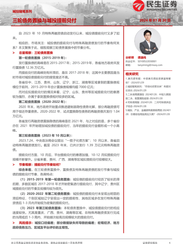 【民生证券】【20240130】城投随笔系列:三轮债务置换与城投提前兑付-22页 行业研究