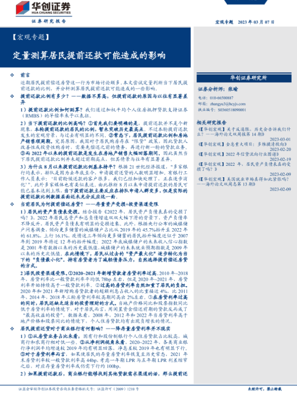【华创证券】【20230307】定量测算居民提前还款可能造成的影响-15页 行业研究