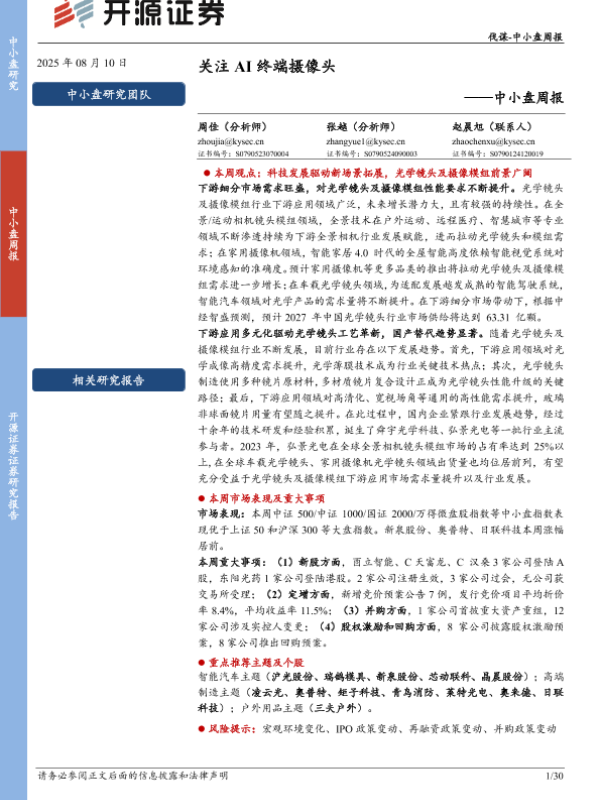 【开源证券】【20250810】中小盘周报:关注AI终端摄像头-30页 证券期货研究报告