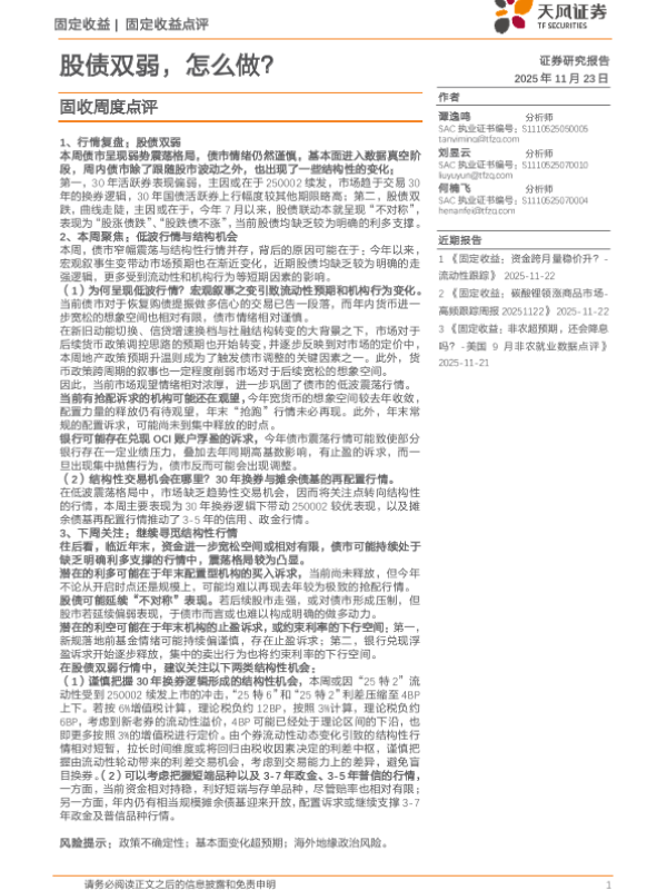 【天风证券】【202511】股债双弱,怎么做?-6页 证券期货研究报告