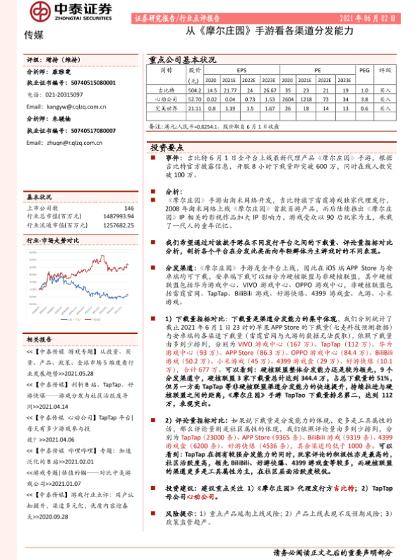 【中泰证券】【20210602】从《摩尔庄园》手游看各渠道分发能力-3页 行业研究