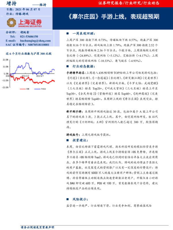 【上海证券】【20210607】20210607-上海证券-传媒行业:《摩尔庄园》手游上线,表现超预期-9页 行业研究