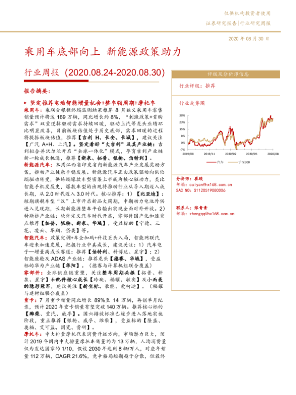 【华西证券】【20200830】20200830-华西证券-汽车行业周报:乘用车底部向上 新能源政策助力-19页 行业研究