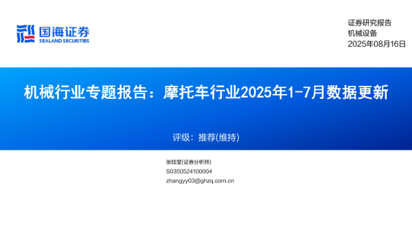 【国海证券】【202508】机械行业专题报告:摩托车行业2025年1-7月数据更新-17页 证券期货研究报告