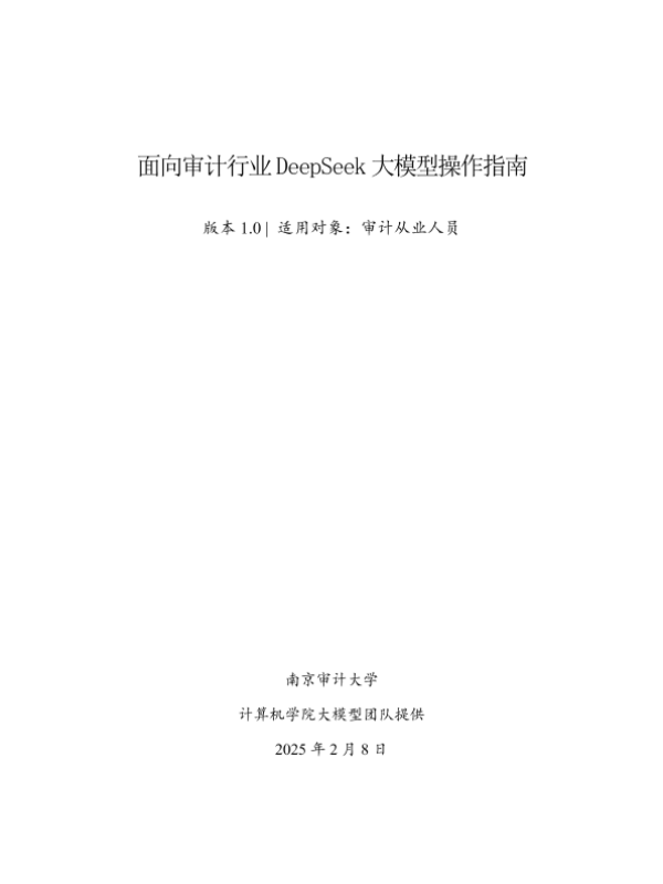 【南京审计大学计算机学院大模型团队】【20250208】2025年面向审计行业DeepSeek大模型操作指南v1.0-27页 指南