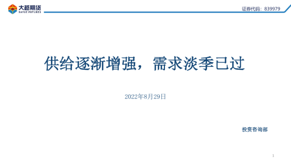 【大越期货】【20220829】供给逐渐增强,需求淡季已过-35页 行业研究