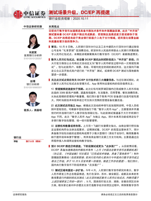 【中信证券】【20201011】银行业投资观察:测试场景升级,DC/EP再提速-10页 行业研究
