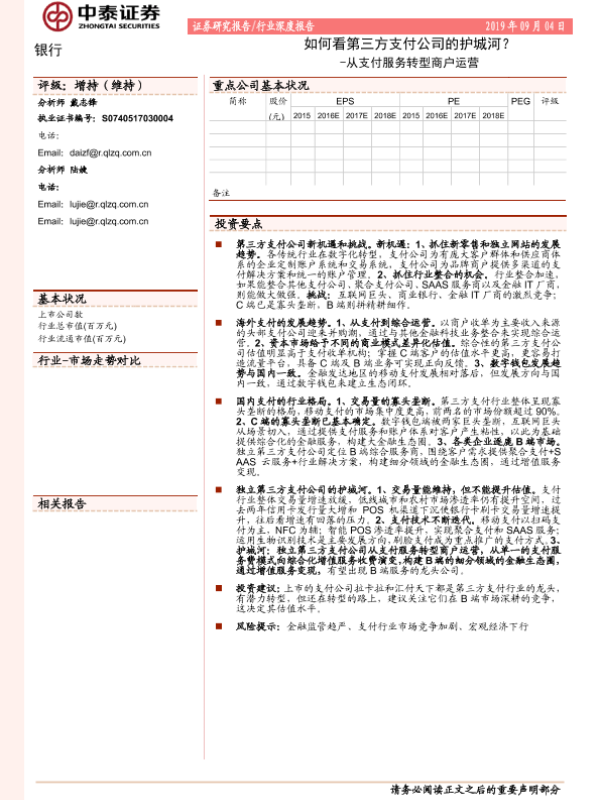 【中泰证券】【20190904】从支付服务转型商户运营-如何看第三方支付公司的护城河-22页 行业研究