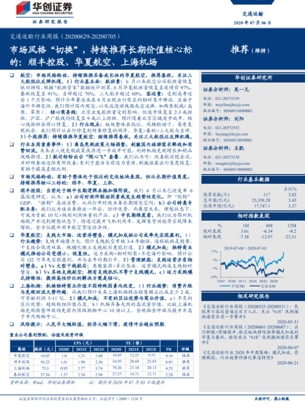 【华创证券】【20200706】交通运输行业周报:市场风格“切换”,持续推荐长期价值核心标的-15页 行业研究