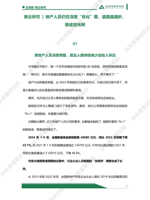 【云洞察-房企研究】【20241105】太扎心!地产人员仍在深度“优化”期-8页 行业研究