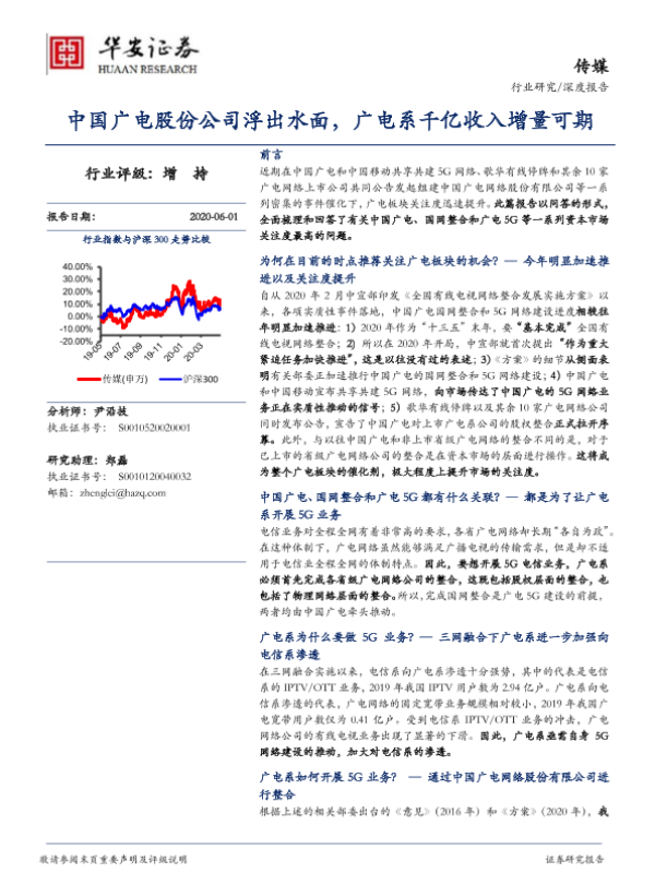 【华安证券】【20200601】20200601-华安证券-传媒行业深度报告:中国广电股份公司浮出水面,广电系千亿收入增量可期-20页 行业研究