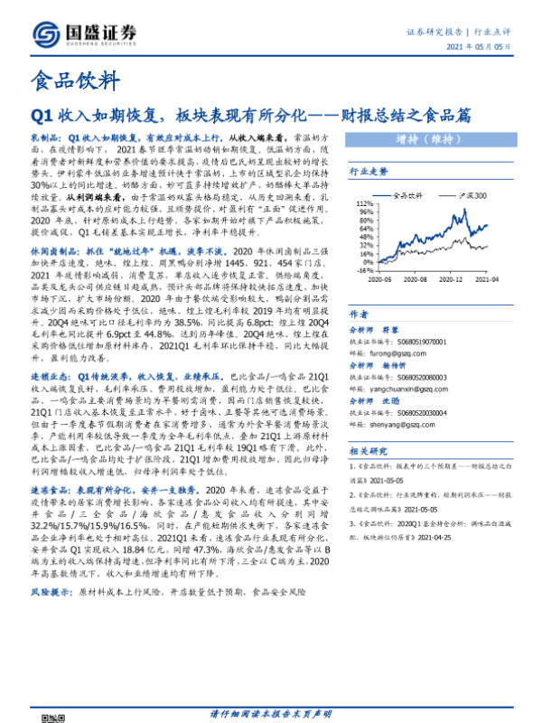 【国盛证券】【20210505】食品饮料行业:财报总结之食品篇-Q1收入如期恢复,板块表现有所分化-11页 行业研究