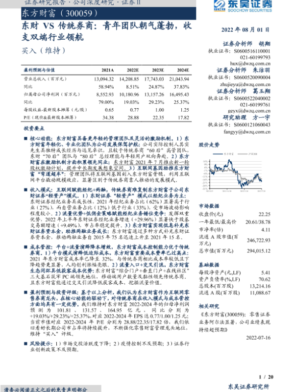 【东吴证券】【20220801】东财VS传统券商:青年团队朝气蓬勃,收支双端行业领航-20页 行业研究