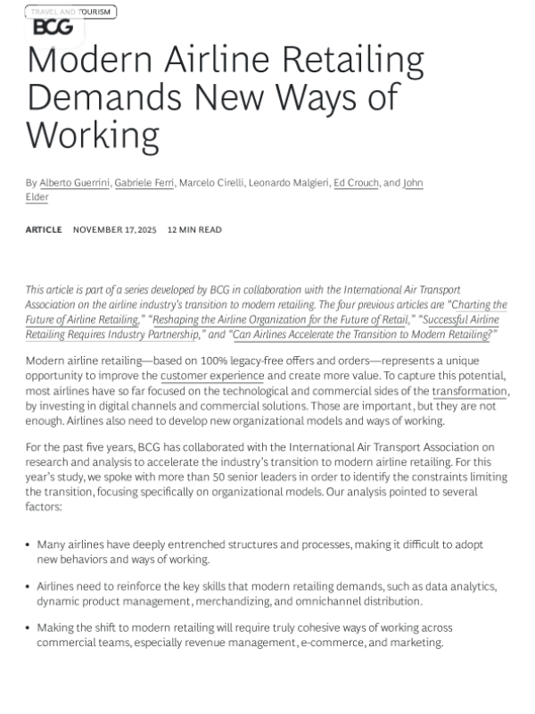【Boston Consulting Group】【202511】Modern Airline Retailing Demands New Ways of Working-11页 行业研究
