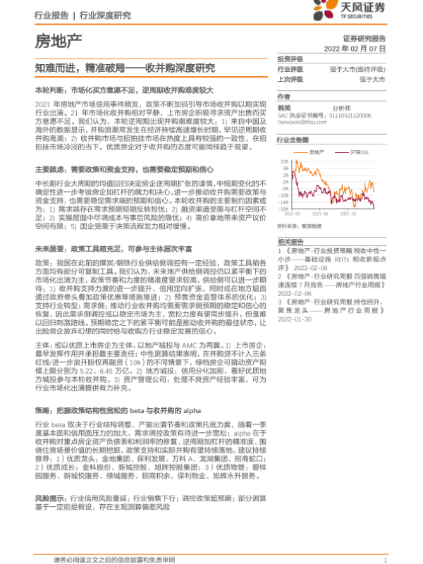 【天风证券】【20220207】房地产收并购深度研究:知难而进,精准破局-36页 行业研究