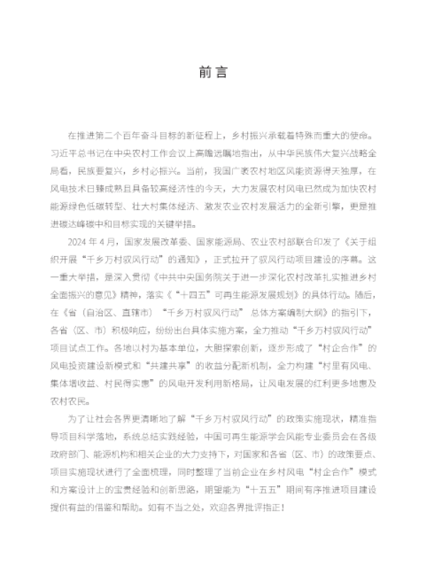 【中国可再生能源学会风能专业委员会】【2025】千乡万村驭风行动全国推进情况及乡村风电'村企合作'模式和方案设计参考-40页 政策文件