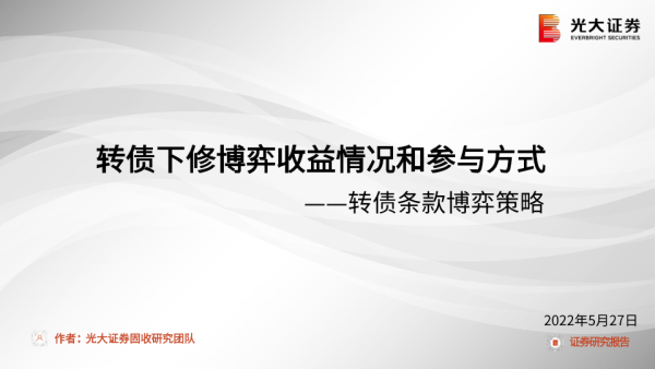 【光大证券】【20220527】转债条款博弈策略:转债下修博弈收益情况和参与方式-25页 行业研究