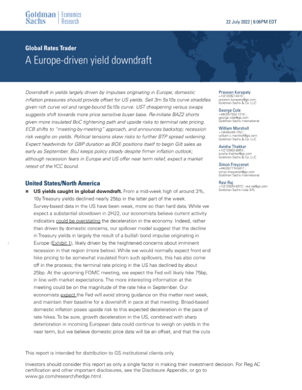 【Goldman Sachs】【20220722】Global Rates Trader A Europe-driven yield downdraft-17页 行业研究