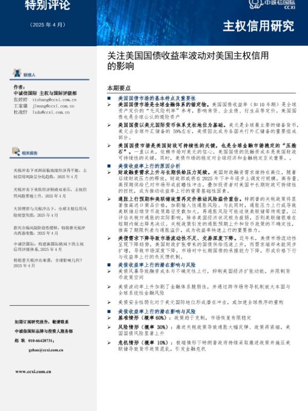 【中诚信国际】【20250708】关注美国国债收益率波动对美国主权信用的影响-9页 行业研究