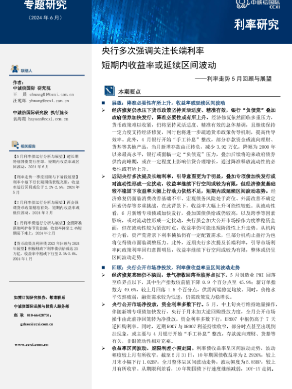 【中诚信国际】【20240601】央行多次强调关注长端利率,短期内收益率或延续区间波动-10页 行业研究