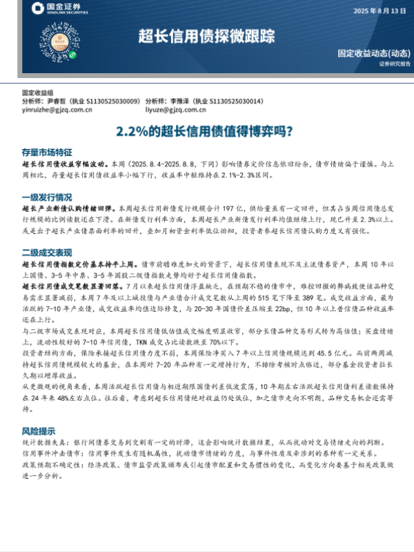 【国金证券】【202508】2.2%的超长信用债值得博弈吗?-11页 证券期货研究报告