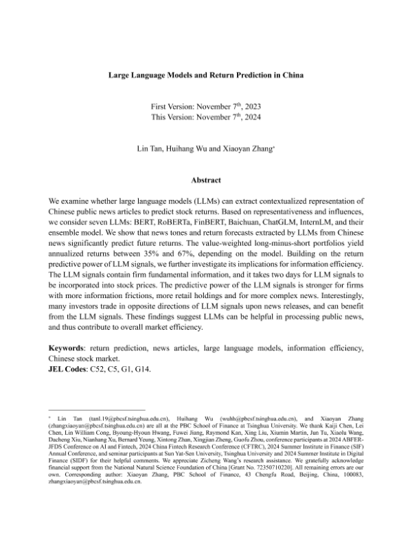 【清华大学五道口金融学院】【20241107】大语言模型与中国股票市场收益率可预测性研究-74页 学术论文
