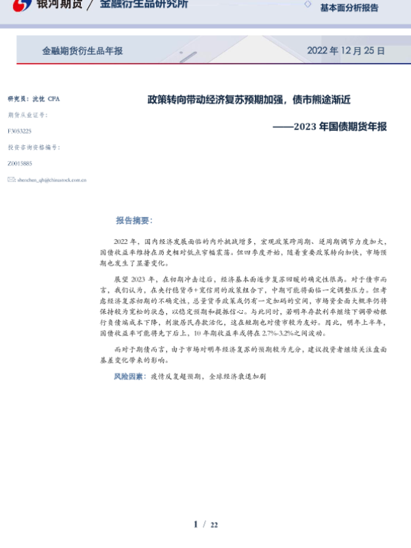 【银河期货】【20221225】2023年国债期货年报:政策转向带动经济复苏预期加强,债市熊途渐近-22页 行业研究