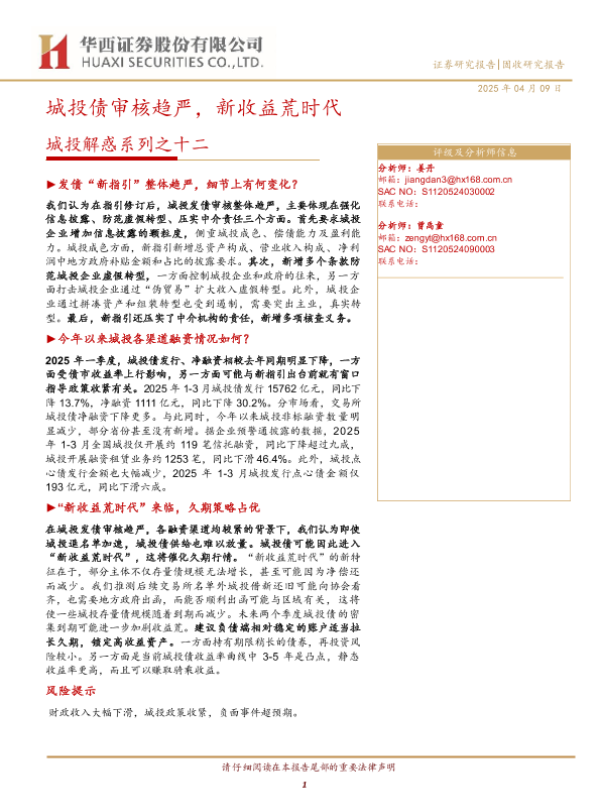【华西证券】【20250409】城投解惑系列之十二:城投债审核趋严,新收益荒时代-14页 证券期货研究报告