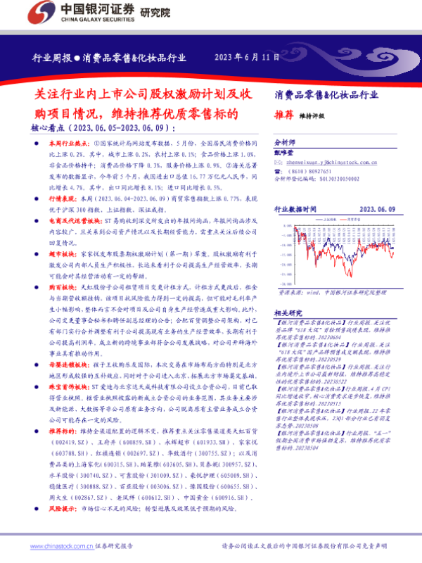 【银河证券】【20230612】消费品零售&化妆品行业周报:关注行业内上市公司股权激励计划及收购项目情况,维持推荐优质零售标的-29页 行业研究