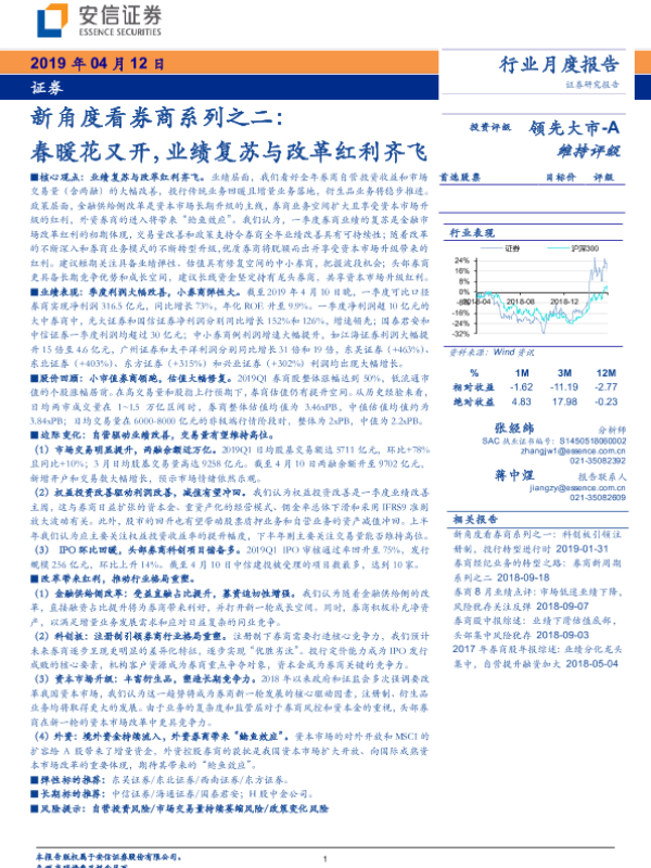 【安信证券】【20190412】证券行业新角度看券商系列之二:春暖花又开,业绩复苏与改革红利齐飞-21页 行业研究