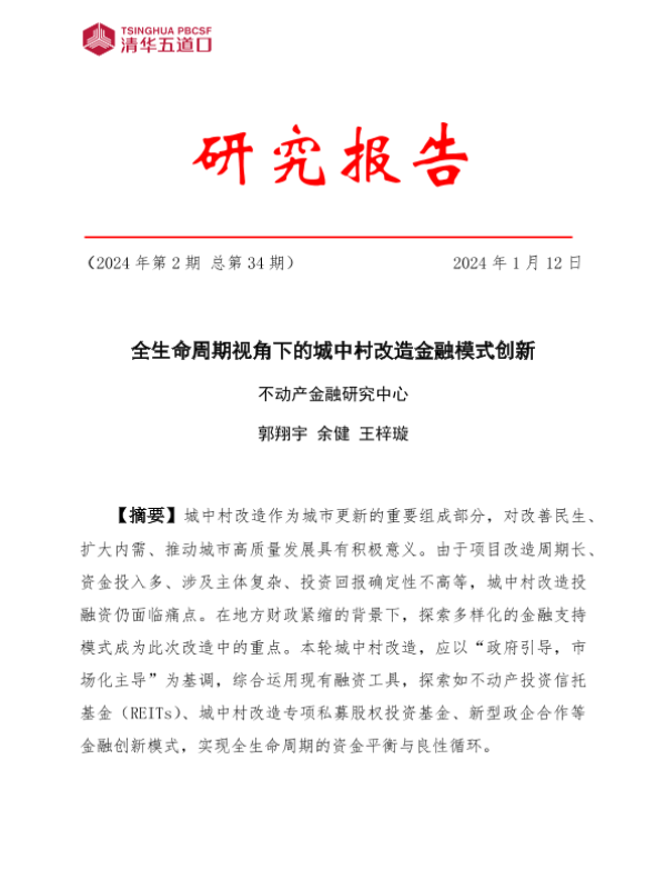 【清华五道口不动产金融研究中心】【20240112】全生命周期视角下的城中村改造金融模式创新-13页 行业研究
