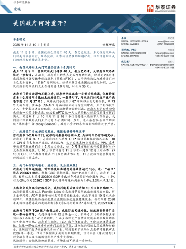 【华泰证券】【202511】美国政府何时重开?-12页 证券期货研究报告