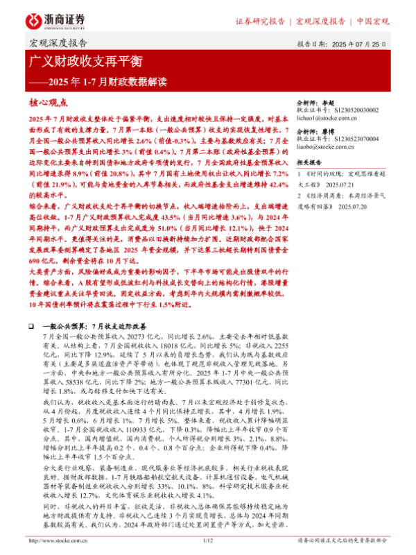 【浙商证券】【202507】广义财政收支再平衡——2025年1-7月财政数据解读-12页 证券期货研究报告