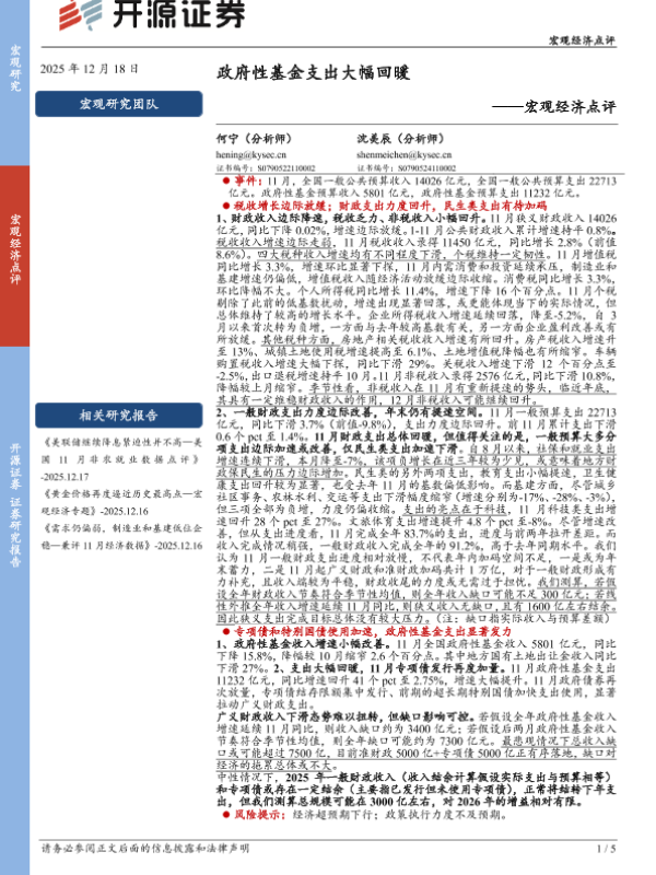 【开源证券】【202512】政府性基金支出大幅回暖——宏观经济点评-5页 证券期货研究报告