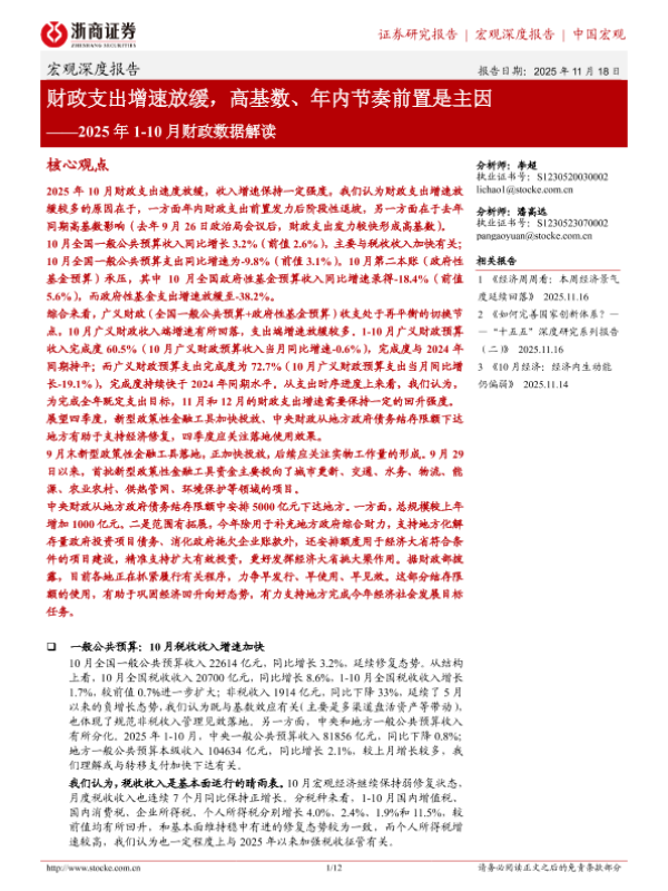 【浙商证券】【202511】财政支出增速放缓,高基数、年内节奏前置是主因——2025年1-10月财政数据解读-12页 证券期货研究报告