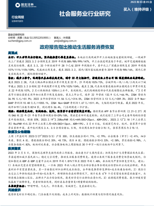 【国金证券】【20230305】推动生活服务消费恢复-15页 行业研究